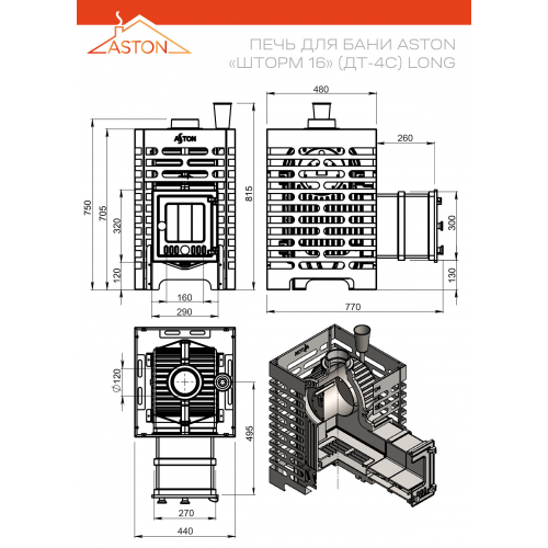 Печь для бани Aston Шторм 16 (ДТ-4С) Long