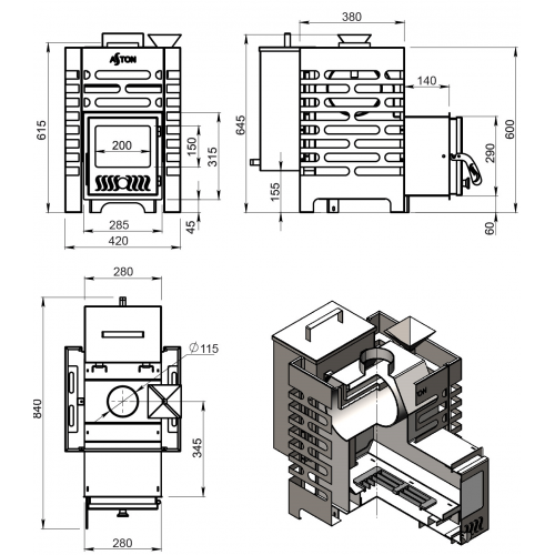 - Печь ASTON из нержавеющий стали марки AISI 430 устойчива к окислению и прогару.