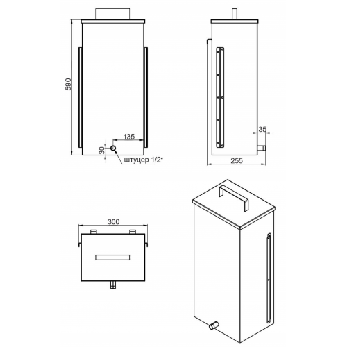 - Стальной кожух-конвектор значительно ускоряет нагревание воздуха в парилке за счет образуемого им мощного воздушного потока.