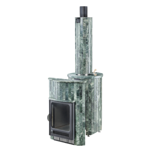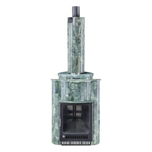 Для изготовления облицовки на нашем заводе используются натуральный камень: змеевик, жадеит, мрамор, окаменевшее дерево и комбинации этих материалов. Облицовка отвечает за эстетические свойства, а также имеет практическое значение — защищает от теплового воздействия. Дымоход в облицовке натуральным камнем выглядит эстетично, вместе с печью может выступать в роли главного украшения бани.