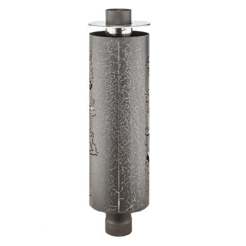 Встроенные каналы распределяют потоки воздуха, забирая холодный воздух в нижней части дымохода, нагревая его и отдавая в верхней части с помощью регулятора. В конструкцию дымохода встроен бак-теплообменник цилиндрической формы (объем — 2,8 литра) из жаропрочной нержавеющей стали толщиной 1 мм. Эффективно использует отходящее тепло от печи, нагревает воду и обеспечивает конвекцию воздуха в парильном помещении. Снабжен шибером, который предназначен для регулировки тяги и обеспечения процесса горения в печах. Надежно фиксируется в заданном положении.
