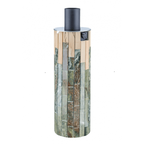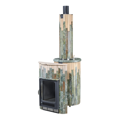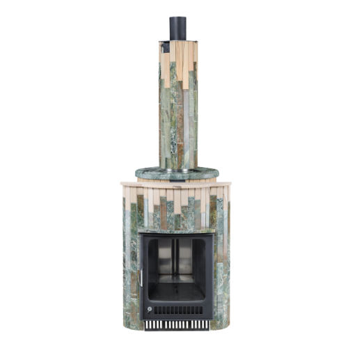 Для изготовления облицовки на нашем заводе используются натуральный камень: змеевик, жадеит, мрамор, окаменевшее дерево и комбинации этих материалов. Облицовка отвечает за эстетические свойства, а также имеет практическое значение — защищает от теплового воздействия. Дымоход в облицовке натуральным камнем выглядит эстетично, вместе с печью может выступать в роли главного украшения бани.