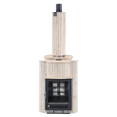 Встроенные каналы распределяют потоки воздуха, забирая холодный воздух в нижней части дымохода, нагревая его и отдавая в верхней части с помощью регулятора. В конструкцию дымохода встроен бак-теплообменник цилиндрической формы (объем — 2,8 литра) из жаропрочной нержавеющей стали толщиной 1 мм. Эффективно использует отходящее тепло от печи, нагревает воду и обеспечивает конвекцию воздуха в парильном помещении. Снабжен шибером, который предназначен для регулировки тяги и обеспечения процесса горения в печах. Надежно фиксируется в заданном положении.