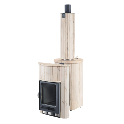 Для изготовления облицовки на нашем заводе используются натуральный камень: змеевик, жадеит, мрамор, окаменевшее дерево и комбинации этих материалов. Облицовка отвечает за эстетические свойства, а также имеет практическое значение — защищает от теплового воздействия. Дымоход в облицовке натуральным камнем выглядит эстетично, вместе с печью может выступать в роли главного украшения бани.