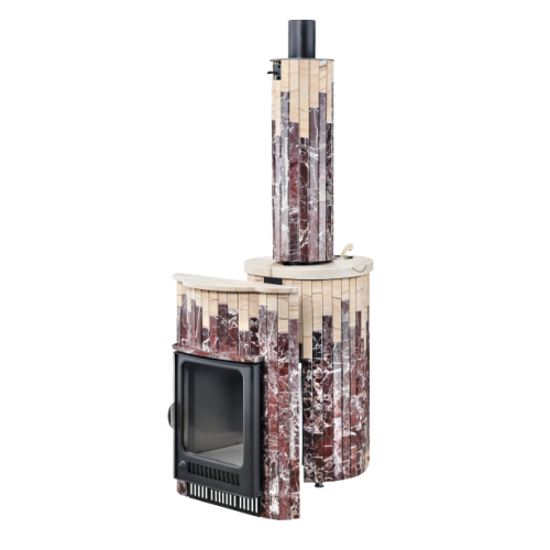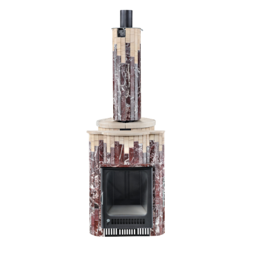 Для изготовления облицовки на нашем заводе используются натуральный камень: змеевик, жадеит, мрамор, окаменевшее дерево и комбинации этих материалов. Облицовка отвечает за эстетические свойства, а также имеет практическое значение — защищает от теплового воздействия. Дымоход в облицовке натуральным камнем выглядит эстетично, вместе с печью может выступать в роли главного украшения бани.