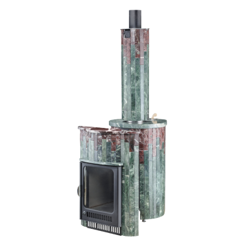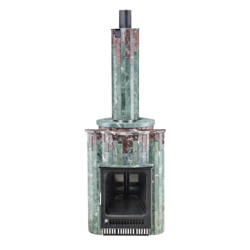 Для изготовления облицовки на нашем заводе используются натуральный камень: змеевик, жадеит, мрамор, окаменевшее дерево и комбинации этих материалов. Облицовка отвечает за эстетические свойства, а также имеет практическое значение — защищает от теплового воздействия. Дымоход в облицовке натуральным камнем выглядит эстетично, вместе с печью может выступать в роли главного украшения бани.