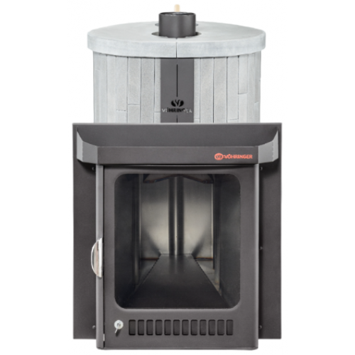 Печи VÖHRINGER с дровяной каменкой, у которой вся топка окружена большой массой камней, сильно разогревается, а дров уходит немного, благодаря полному сжиганию дымовых газов с помощью бокового и верхнего горения. Использование эффекта «Vortex», позволяет извлечь всю энергию и направить её на нагрев большого количества камней.