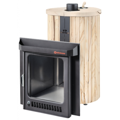 Печи VÖHRINGER с дровяной каменкой, у которой вся топка окружена большой массой камней, сильно разогревается, а дров уходит немного, благодаря полному сжиганию дымовых газов с помощью бокового и верхнего горения. Использование эффекта «Vortex», позволяет извлечь всю энергию и направить её на нагрев большого количества камней.