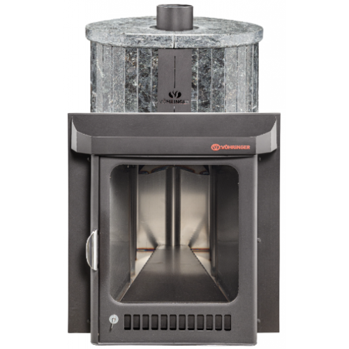 Печи VÖHRINGER с дровяной каменкой, у которой вся топка окружена большой массой камней, сильно разогревается, а дров уходит немного, благодаря полному сжиганию дымовых газов с помощью бокового и верхнего горения. Использование эффекта «Vortex», позволяет извлечь всю энергию и направить её на нагрев большого количества камней.