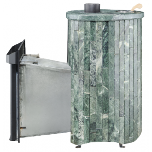 Облицовка из натурального камня по технологии "Ламель" несёт удивительное, целебное тепло, сохраняя, навсегда, изумительный облик. Печь для бани от завода VÖHRINGER, в облицовке "Ламель", может быть изготовлена из камня Жадеит или "Окаменевшее дерево", когда великолепный индивидуальный орнамент каменного среза, переносится на печь.