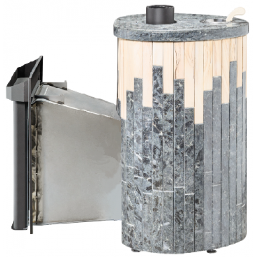 Облицовка из натурального камня по технологии "Ламель" несёт удивительное, целебное тепло, сохраняя, навсегда, изумительный облик. Печь для бани от завода VÖHRINGER, в облицовке "Ламель", может быть изготовлена из камня Жадеит или "Окаменевшее дерево", когда великолепный индивидуальный орнамент каменного среза, переносится на печь.