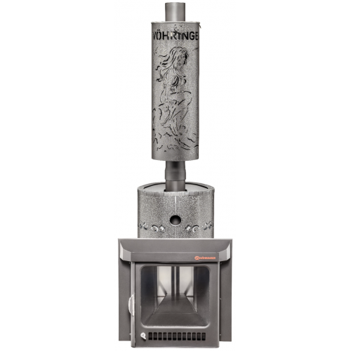 Печи VÖHRINGER с дровяной каменкой, у которой вся топка окружена большой массой камней, сильно разогревается, а дров уходит немного, благодаря полному сжиганию дымовых газов с помощью бокового и верхнего горения. Использование эффекта «Vortex», позволяет извлечь всю энергию и направить её на нагрев большого количества камней.