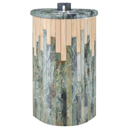Облицовка из натурального камня по технологии "Ламель" несёт удивительное, целебное тепло, сохраняя, навсегда, изумительный облик. Печь для бани от завода VÖHRINGER, в облицовке "Ламель", может быть изготовлена из камня Жадеит или "Окаменевшее дерево", когда великолепный индивидуальный орнамент каменного среза, переносится на печь.