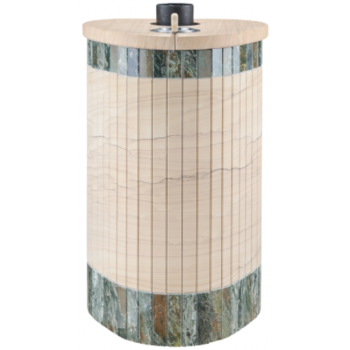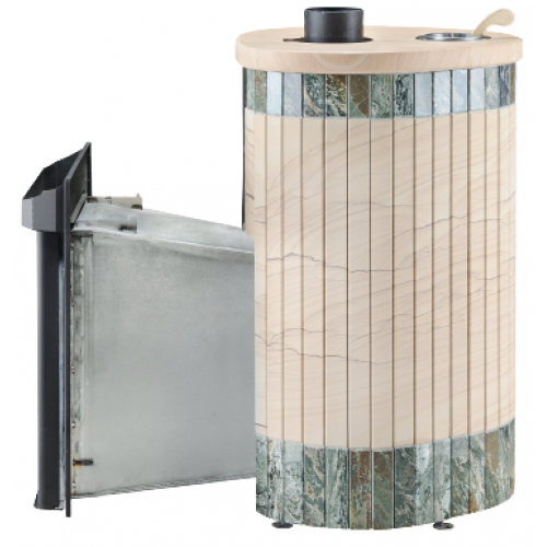 Облицовка из натурального камня по технологии "Ламель" несёт удивительное, целебное тепло, сохраняя, навсегда, изумительный облик. Печь для бани от завода VÖHRINGER, в облицовке "Ламель", может быть изготовлена из камня Жадеит или "Окаменевшее дерево", когда великолепный индивидуальный орнамент каменного среза, переносится на печь.