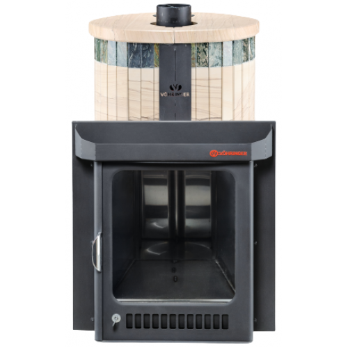 Печи VÖHRINGER с дровяной каменкой, у которой вся топка окружена большой массой камней, сильно разогревается, а дров уходит немного, благодаря полному сжиганию дымовых газов с помощью бокового и верхнего горения. Использование эффекта «Vortex», позволяет извлечь всю энергию и направить её на нагрев большого количества камней.