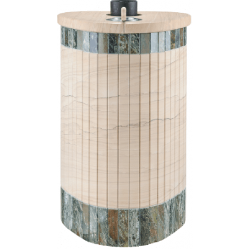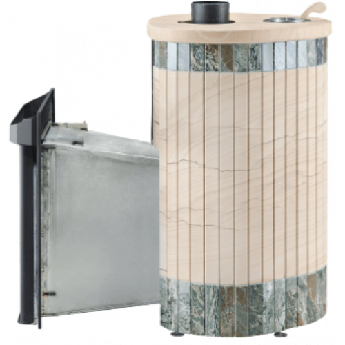 Облицовка из натурального камня по технологии "Ламель" несёт удивительное, целебное тепло, сохраняя, навсегда, изумительный облик. Печь для бани от завода VÖHRINGER, в облицовке "Ламель", может быть изготовлена из камня Жадеит или "Окаменевшее дерево", когда великолепный индивидуальный орнамент каменного среза, переносится на печь.