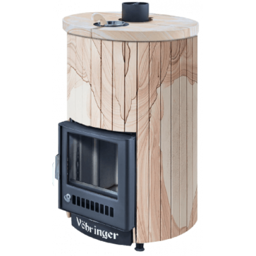 Печи VÖHRINGER с дровяной каменкой, у которой вся топка окружена большой массой камней, сильно разогревается, а дров уходит немного, благодаря полному сжиганию дымовых газов с помощью бокового и верхнего горения. Использование эффекта «Vortex», позволяет извлечь всю энергию и направить её на нагрев большого количества камней.