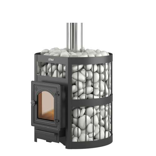 Для устройства наружной открытой каменки печь ЭТНА 18 оснащается сеткой. Пространство между печью и сеткой из двухмиллиметровой стали заполняется камнями для бани, которые выполняют роль теплонакопителя, перераспределяют тепло от стенок топки и защищают парящихся от жёсткого инфракрасного излучения. Воду подают на нагретые камни, с которых полученный пар распространяется по всему объёму парной. Сетка диаметром 620 миллиметров вмещает в себя до 150 килограммов камней крупной и средней фракции.