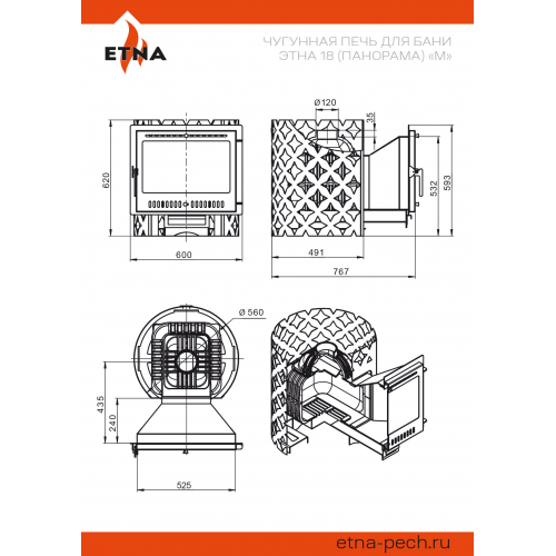Печь для бани Этна 18 (Панорама М)