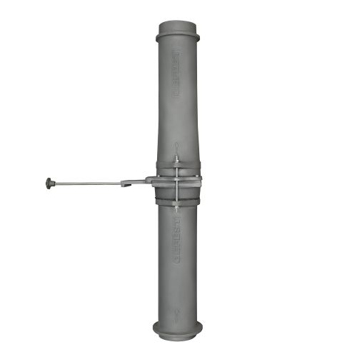 Чугунный шиберный модуль ф150/1000 предназначен для установки в качестве стартового элемента на печи Гефест/Гроза/Гром взамен стандартного патрубка. Состоит из 2-х участков чугунных стартовых труб с установленным между ними чугунным шиберным блоком.