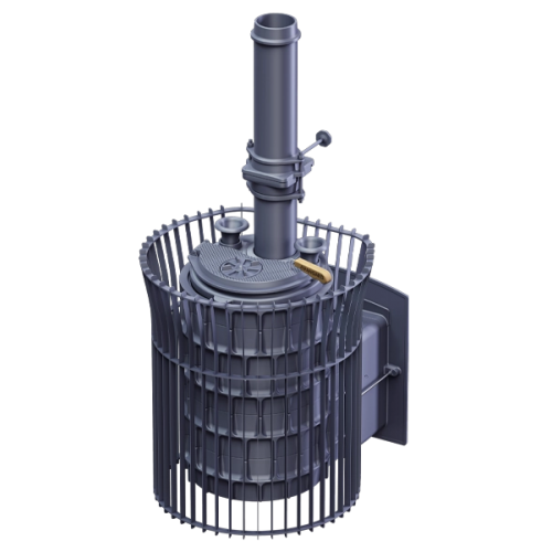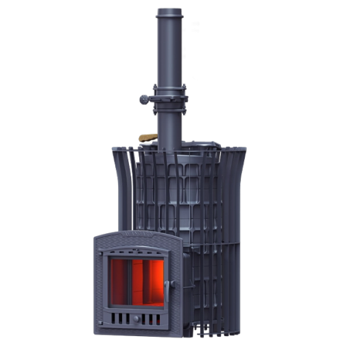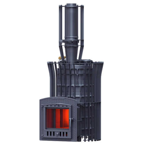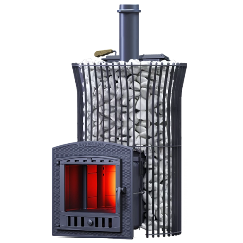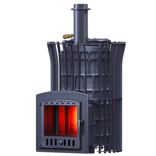 Масса пароиспарителя в печи AVANGARD 62 кг, и он нагревается прямым контактом с пламенем. У пароиспарителя 2 поверхности с увеличенной рабочей площадью – снизу идёт нагрев огнём, а сверху поддаётся вода для пара. У печи уникальная, массивная каменка с теплонакопительными воронками, для получения легкого пара.