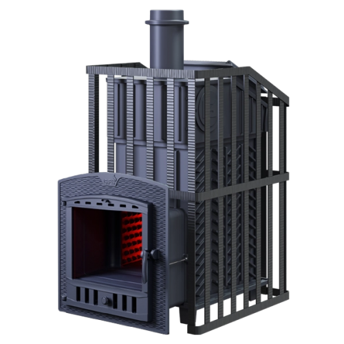 GFS ЗК 30 (П)2 Ураган - расширенный комплект печи в сетке. Максимально приближенный вариант печи для режимов русской парной, имеющий непосредственно закрытую чугунным коробом каменку, дверцу для пара с ручкой из бука. Печь легко модернизируется до полноценной печи предназначенной для Русской бани путем замены стальной сетки на каменную облицовку без демонтажа дымохода.