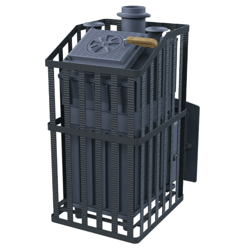Печь легко модернизируется до полноценной печи предназначенной для Русской бани путем замены стальной сетки на каменную облицовку без демонтажа дымохода. Модель GROZA выполнена на базе топочного агрегата - экономичная модель для частного применения.