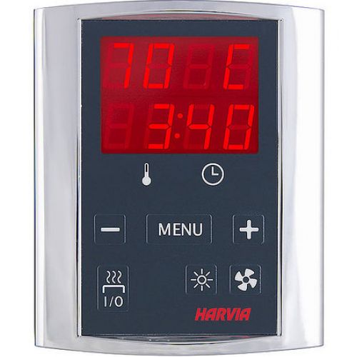 Harvia Griffin впечатляет как формой, так и содержанием. Хромированная цифровая панель управления гармонично сочетается с остальными элементами современных саун и ванных комнат. Небольшая и плоская панель управления допускает установку практически в любом сухом месте.