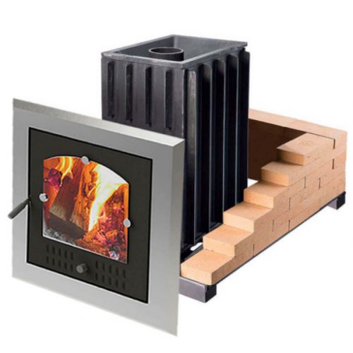 Используя топочный агрегат Калита, Пользователь может смонтировать банную печь в соответствии со своими вкусами и потребностями. Достаточно лишь определиться с конструкцией ограждения печи. В качестве материала для устройства ограждения печи рекомендуется использовать кирпич, природный камень или другой жаростойкий материал. Для удобства Пользователя и соблюдения противопожарных норм при самостоятельном обустройстве ограждения печи в комплект поставки Топочного агрегата Калита входят установочные рамки.