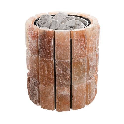 В условиях специфического микроклимата, особого температурно-влажностного режима в парном помещении испарение полезных микроэлементов и выделение ионов из минералов гималайской соли становится максимально активным, а сами процедуры максимально эффективными и полезными. Солевые блоки и плиты реально выдерживают температуры до 500С, и достаточно высокую, абсолютную влажность. Это означает, что без сомнения их можно использовать не только для оформления каких-либо стеновых панно, как с декоративной подсветкой, так и без неё, но и для оформления внешних корпусов самих топочных агрегатов, вместо применяемых сегодня каменных облицовок, для защиты стен от температурных излучений от этих топочных агрегатов. Естественно разумно в этих случаях выдерживать определенное расстояние от облицовываемых поверхностей до внутренней солевой поверхности. Функционально это расстояние является по факту не только конвекционным каналом для прохода воздуха, снимающего температуру, как с самих соляных элементов, так и с защищаемой с их помощью поверхности, но и обеспечивает дополнительное испарение и передачу с конвекционными потоками микроэлементов с внутренней стороны солевой облицовки в парное помещение. В вариантах устройства стеновых панно или облицовки стен солевыми блоками это расстояние можно использовать для монтажа в нём систем декоративной подсветки.