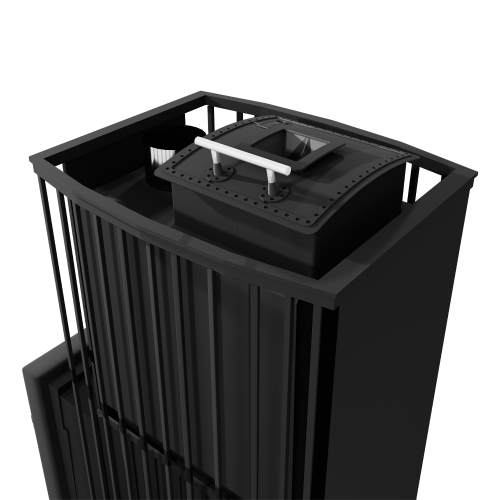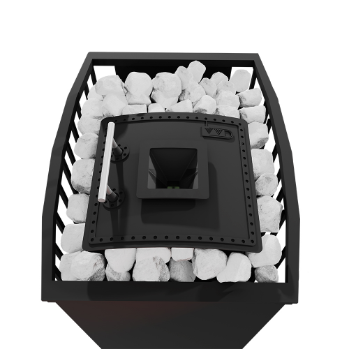 - закрытая каменка из нержавеющей стали AISI439, вмещающая до 100 кг камней для парообразования, обеспечивает их максимальный прогрев, и, как следствие – легкий мелкодисперсный пар;