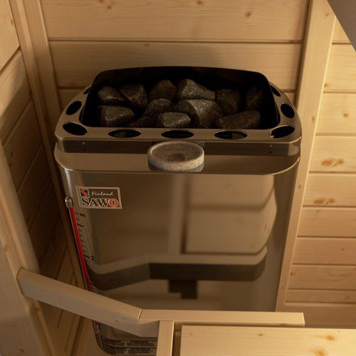 Электрическая печь Sawo Mini Combi (печь со встроенным парогенератором) — печь отличается от серии «Mini» встроенным парогенератором, позволяющим сделать в сауне режим, приближенный к влажной парной. Одним из ноу-хау является встроенный индикатор воды, который позволит Вам всегда видеть количество воды, оставшееся в парогенераторе. Также сверху печи SAWO Mini Combi расположена чаша для эфирных масел, что, несомненно, является большим плюсом.