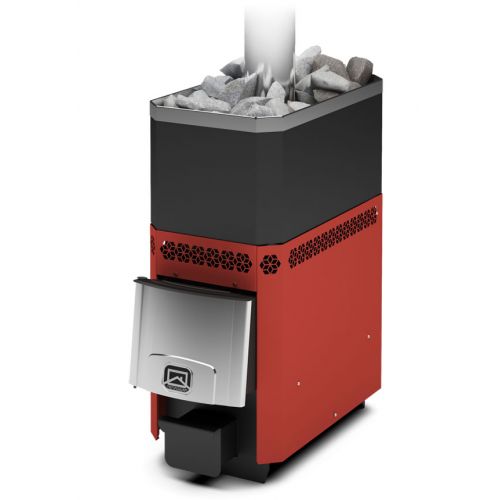Топка печи выполнена из нержавеющей стали для длительного периода эксплуатации. Каменка печи вентилируемая, что позволяет камни и парное помещение бани прогревать пропорционально. Невысокий кожух-конвектор не сушит воздух создавая в парилке микроклимат "Русской бани" с невысокой температурой и повышенной влажностью. Протапливается печь только из парного помещения бани (топка не выносная), тяга регулируется зольником. Нагрев воды возможен установкой на печь бака на трубе или теплообменника к которому подсоединяется выносной бак. Если нагрев воды не нужен используйте сэндвич-сетку в качестве первого элемента дымохода.