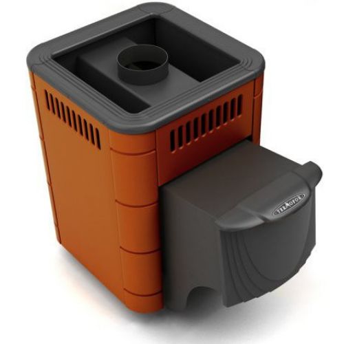 Термофор Оса Inox ДА терракота - печь для парилки до 9 м.куб. Дверца печи бывает нескольких типов: обычная и из нержавейки, со стеклом и без него. Печь имеет вентилируемый кожух-конвектор, который ускоряет время нагрева воздуха в парилке, топка печи изготовлена из жаростойкой высоколегированной стали с содержанием хрома не менее 16%. Колосник, расположенный в нижней части топки, изготовлен из массивного литейного чугуна, под топкой печи расположен зольник с выдвижным зольным ящиком. Дымоход подключается с верху. Для нагрева воды можно установить бак на трубе или теплообменник (регистр), который соединяется медными или нержавеющими трубками. Размеры дверки 190х240 мм.