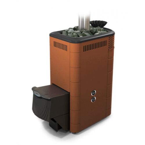 Закрытая первичная каменка большой емкости обладает достаточной теплоемкостью для частых интенсивных подач воды.