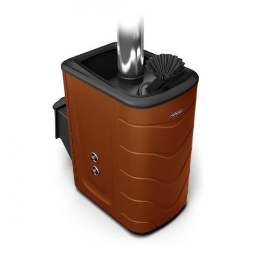 Эта версия оснащена встроенным теплообменником для нагрева воды. Её отличительной чертой является уникальная система двойного парообразования, которая позволяет получить исключительно качественный легкий пар. При этом не требуются какие-то специальные навыки профессионального парильщика. Воронка со встроенным клапаном-дозатором поможет налить именно столько воды, сколько надо, и не позволит «залить» камни. Центральное размещение дымохода облегчает и упрощает монтаж дымохода. Повышенная надежность печи обеспечивается термической равнопрочностью - теплонагруженные элементы выполнены из жаростойкой стали толщиной 3 мм.