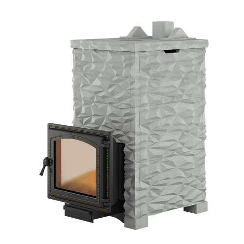 Комплект с чугунной банной печью «Легенда Русский пар 24 (240) Next» в облицовке из натурального камня.