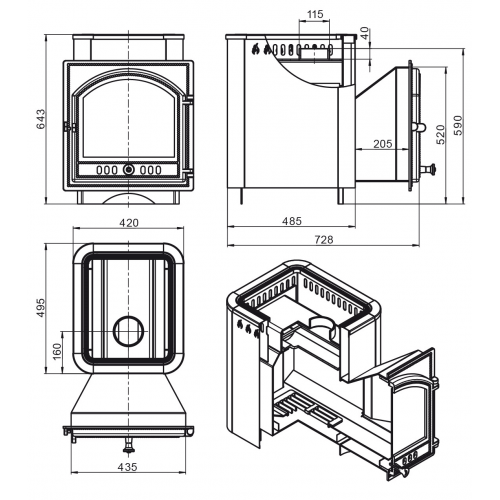 Дверка, пламегаситель и колосник изготовлены из чугуна, что увеличивает их прочность и срок службы.