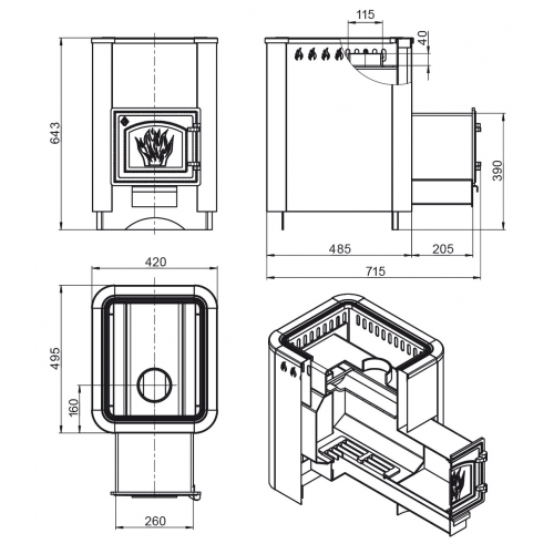 - Диаметр дымохода 115 мм