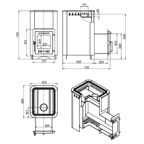 | Дверца | Везувий 210 «М» (337x413 мм) |