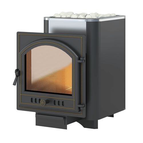 Банная чугунная печь Сенсация 22 (205) укомплектована чугунной герметичной дверцей Везувий 205 с жаропрочным стеклом «SCHOTT ROBAX».