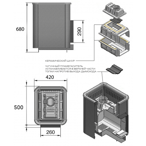 Материал дверцы | жаростойкий чугун (ГОСТ 1412-85) |