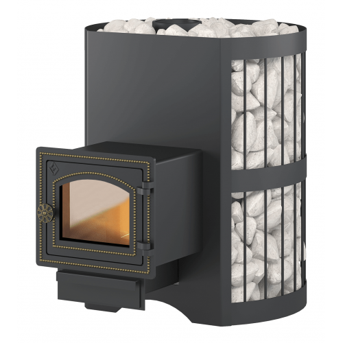 Печь СКИФ оборудована открытой каменкой, закладываемой камнями для бани (приобретаются отдельно).