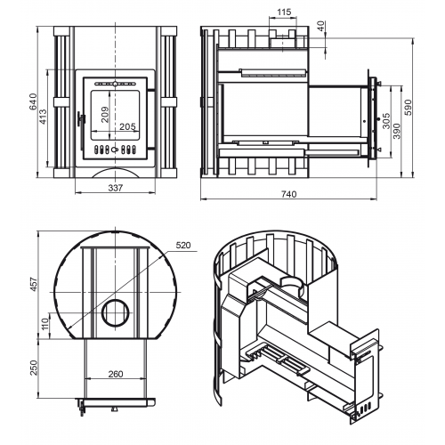 - Диаметр дымохода 115 мм