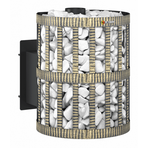 В сетку по всей высоте укладываются камни для бани, обеспечивая большой объём заклада и длительное удержание тепла после прогрева.