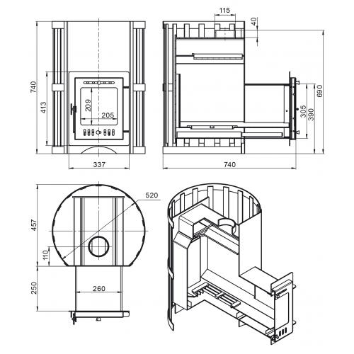 Съёмный чугунный колосник в сочетании со скошенными краями боковой части стенки облегчает уход за топкой, уборку золы и несгоревших углей.