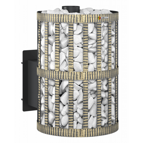 Сетка сделана из кованой стальной ленты шириной 40 мм. В сетку по всей высоте укладываются камни для бани, обеспечивая большой объём заклада и длительное удержание тепла после прогрева каменки.