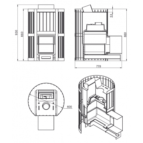 - Материал закрытой каменки особо прочная котловая сталь 09Г2С
