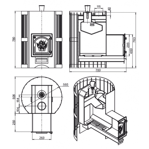 - Диаметр дымохода 115 мм