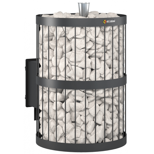 В сетку по всей высоте укладываются камни для бани, обеспечивая большой объём заклада и длительное удержание тепла после прогрева каменки.